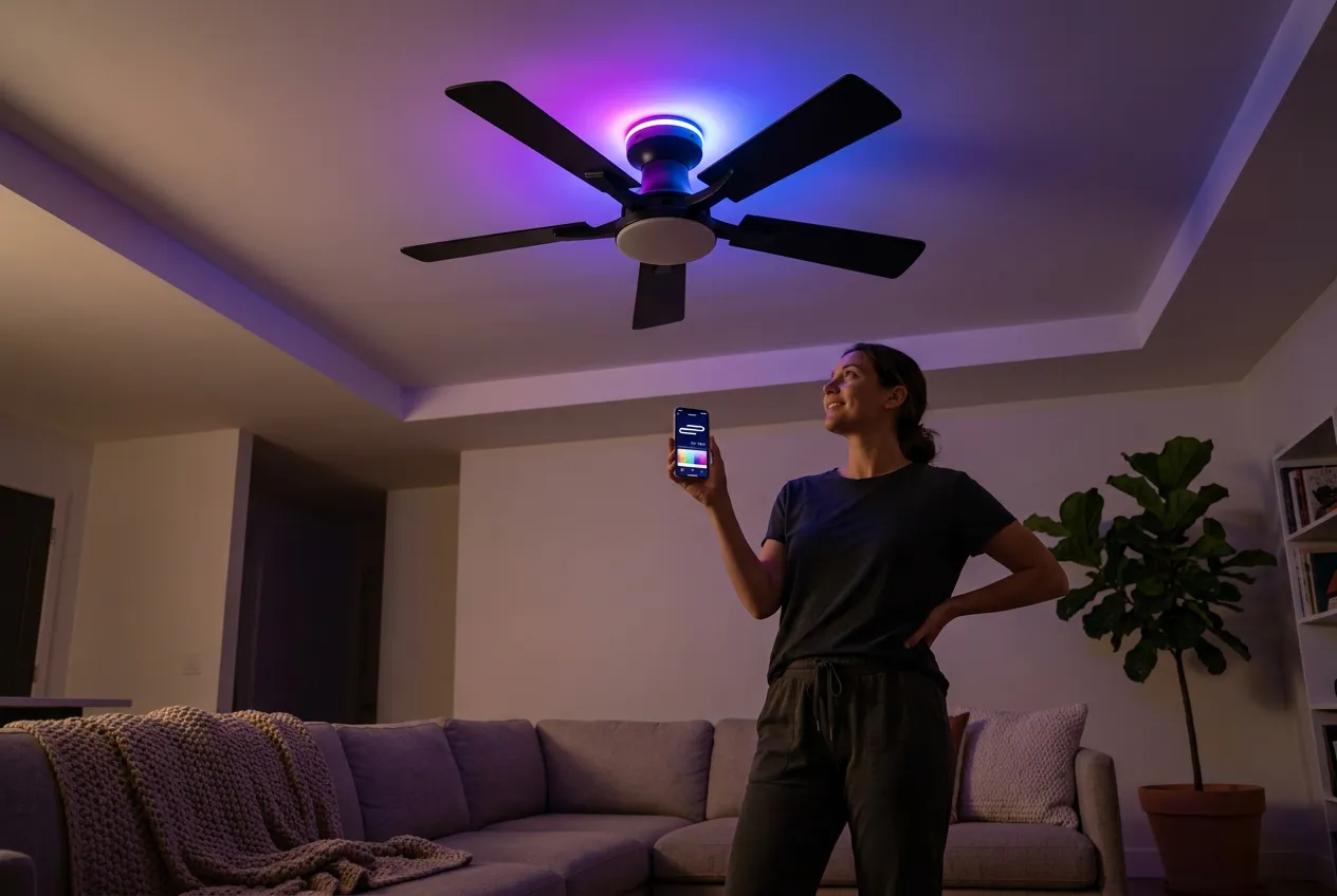 The Zmishibo 42 Inch RGB Flush Mount Ceiling Fan is awesome. I love the rhythmic RGB ambient lighting—it makes my game room feel totally different depending on the mood. Setting it up with Alexa was super simple, and the 6-speed motor is dead silent even when I'm streaming.