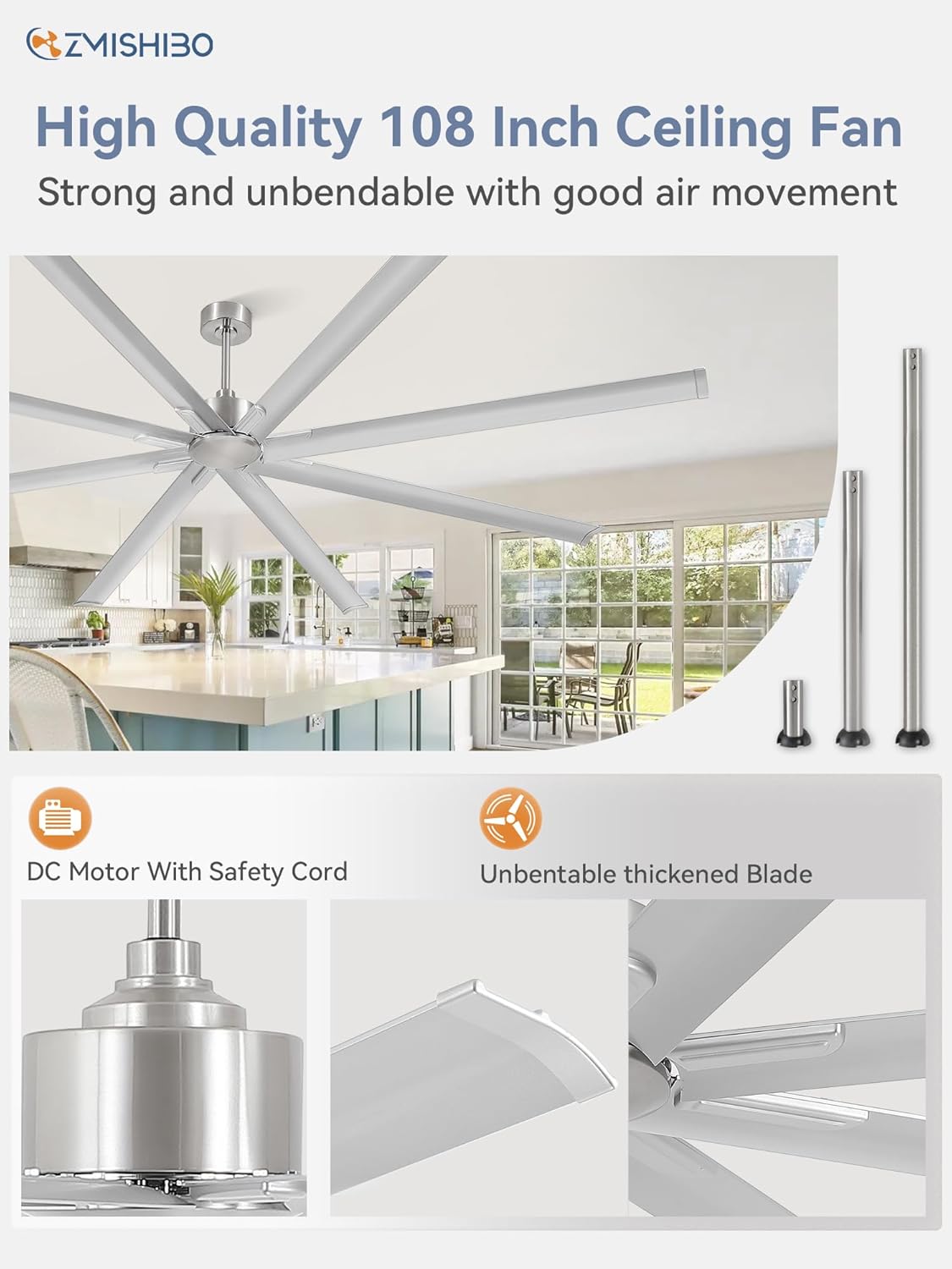 Zmishibo 108 Inch Industrial Ceiling Fan