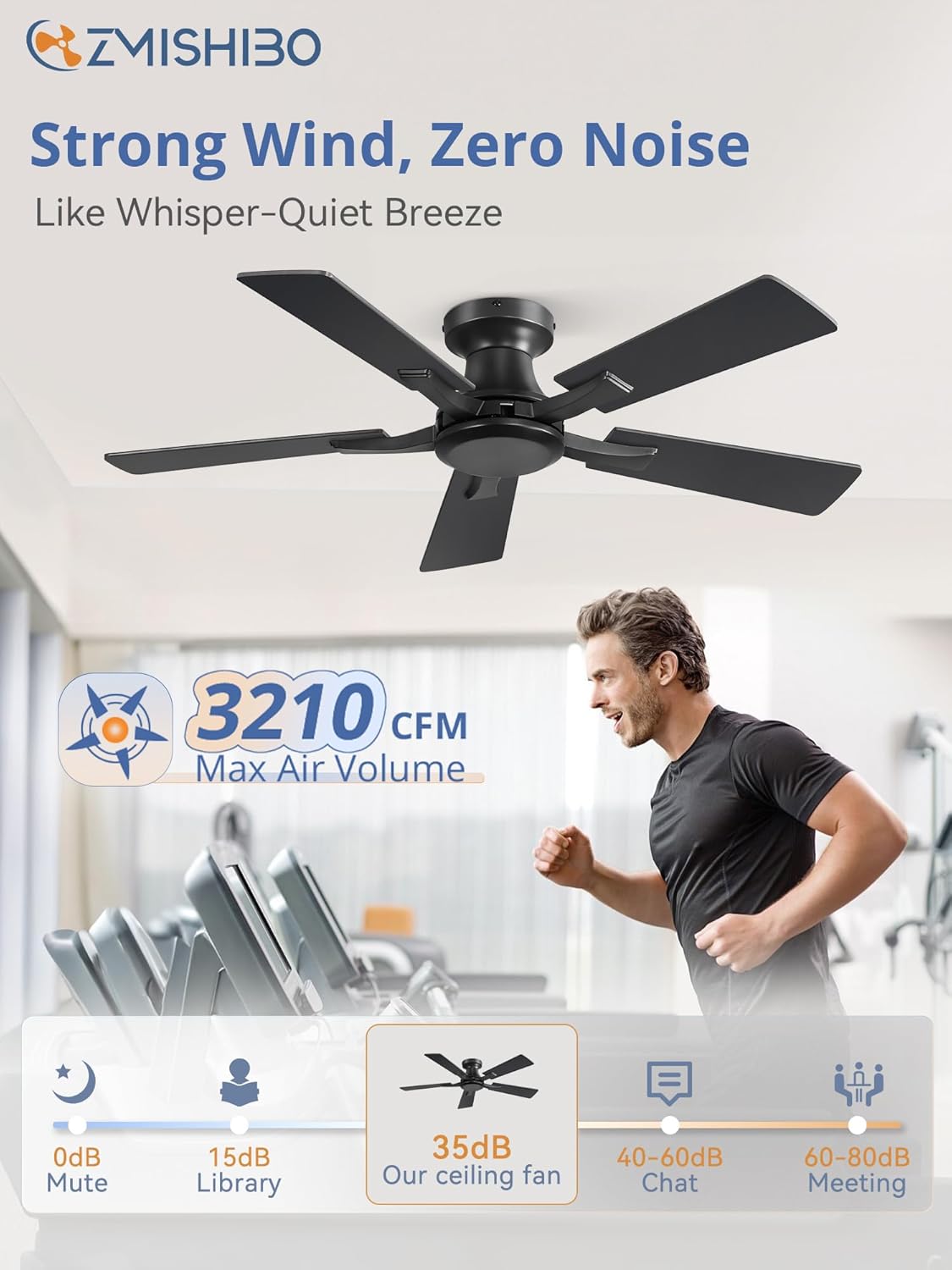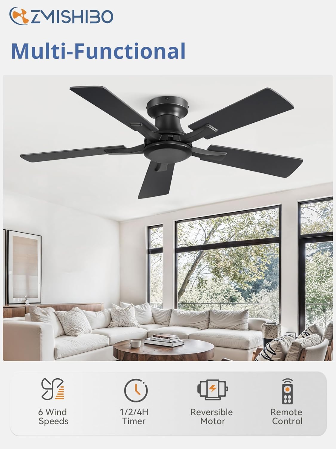 Zmishibo 42 Inch Flush Mount Ceiling Fan Without Light